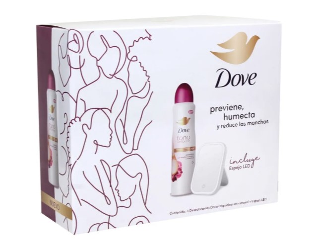 DESODORANTE DOVE TONO UNIFORME ORQUÍDEAS PARA MUJER EN AEROSOL 3 UND + ESPEJO LED