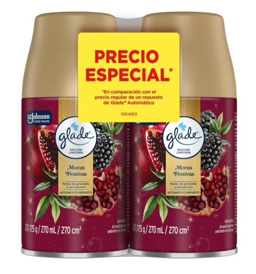 OFERTA 2 UND REPUESTO AROMATIZANTE GLADE AUTOMATICO MORAS FESTIVAS 270 ML